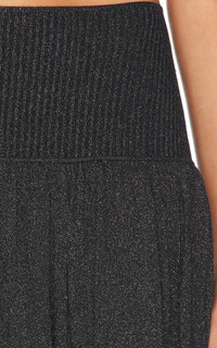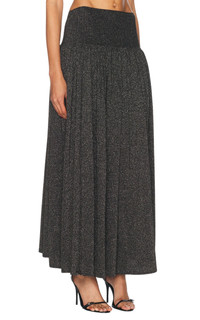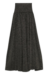Crafted from a Viscose blend with knitted construction and lurex detailing, this skirt features an elasticated high waist, gathered detailing, and a slight flare for a chic look. Metallic threading Elasticated waistband High waist Gathered detailing Slight flare Unlined Straight hem Composition: Viscose 72%, Polyamide 23%, Metallic Fibre 5% Hand Wash