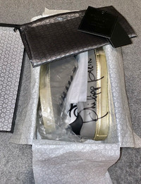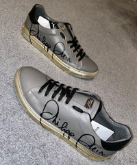 Philipp Plein Low-Top Signature Sneakers: - RETAILS FOR $630 BEFORE TAX!!! - Grey Leather with Black Signature Writing and Metallic Gold Sole - Size EU 44 / US 11 - Condition is New with box. - Philipp Plein creativity generated a shoe collection with simple and clean lines but with a high communication impact. Like these nappa lo-top sneakers with Philipp Plein's signature overprint. The iconic contrasting skull is set on the collar. Lace-up front fastening. Padded hems. Slide-safe rubber sole. Fully lined. Removable insole. Made in Italy. - Outer Composition: Calf Leather 100% | Sole Composition: Rubber 100% | Lining Composition: Calf Leather 100%