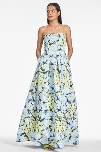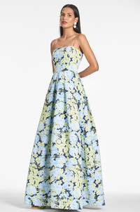 Introducing the Beau Gown in our custom garden club print. She is the perfect dress for any special occasion. The princess fit and flair silhouette is crafted in a chic faille with engineered pleats making it an elegantly whimsical and romantic choice. Featured in our Garden Club print, with peonies and gardenias in full bloom. As always, our prints are exclusive to Sachin&Babi and created by our design team, ensuring you will not see them anywhere other than in our Collection. Details: - Model is 5'11" wearing size 2 - Full-Length, 60" from top of shoulder to bottom hem - Back Zipper - Printed Poly Faille - 100% Polyester - Imported - Style #S242G12-466