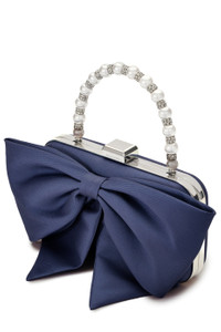 Introducing the Bubbly Bag, inspired by exactly what you would imagine. This fully-framed evening bag features a silver tone finish and an interior pocket. Its rich Mikado fabrication lends itself to luxury, while the pearl and crystal embellished top handle speaks to its timeless sophistication. The perfect companion to any fete. Details: - 7.68" L X 2.36" W X 4.9" H - 3.5" Handle Drop - Snap Closure - Outer: Stretch Mikado - Inner: Satin Lining - 97% Polyester 3% Spandex - Imported - Style # F251H04-415