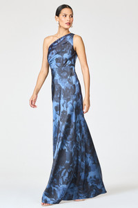 Delphine is our take on the one-shoulder, wear-on-repeat gown. The printed satin crepe cutie, featured in our Deep Ocean Bouquet, flatters in all the right places. A sash adorns the shoulder to add visual intrigue. Timeless yet modern, this gown will be on your black tie rotation. As always, our prints are exclusive to Sachin&Babi and created by our design team, ensuring you will not see them anywhere other than in our Collection. Details: - Model is 5'11" and Wearing A Size 2 - Full-Length, 61" from top of shoulder to bottom hem - Plus size 63" - Side Zipper - Half-lined - No Pockets - Printed Satin Crepe - 100% Polyester - Imported - Style # F251G61-405