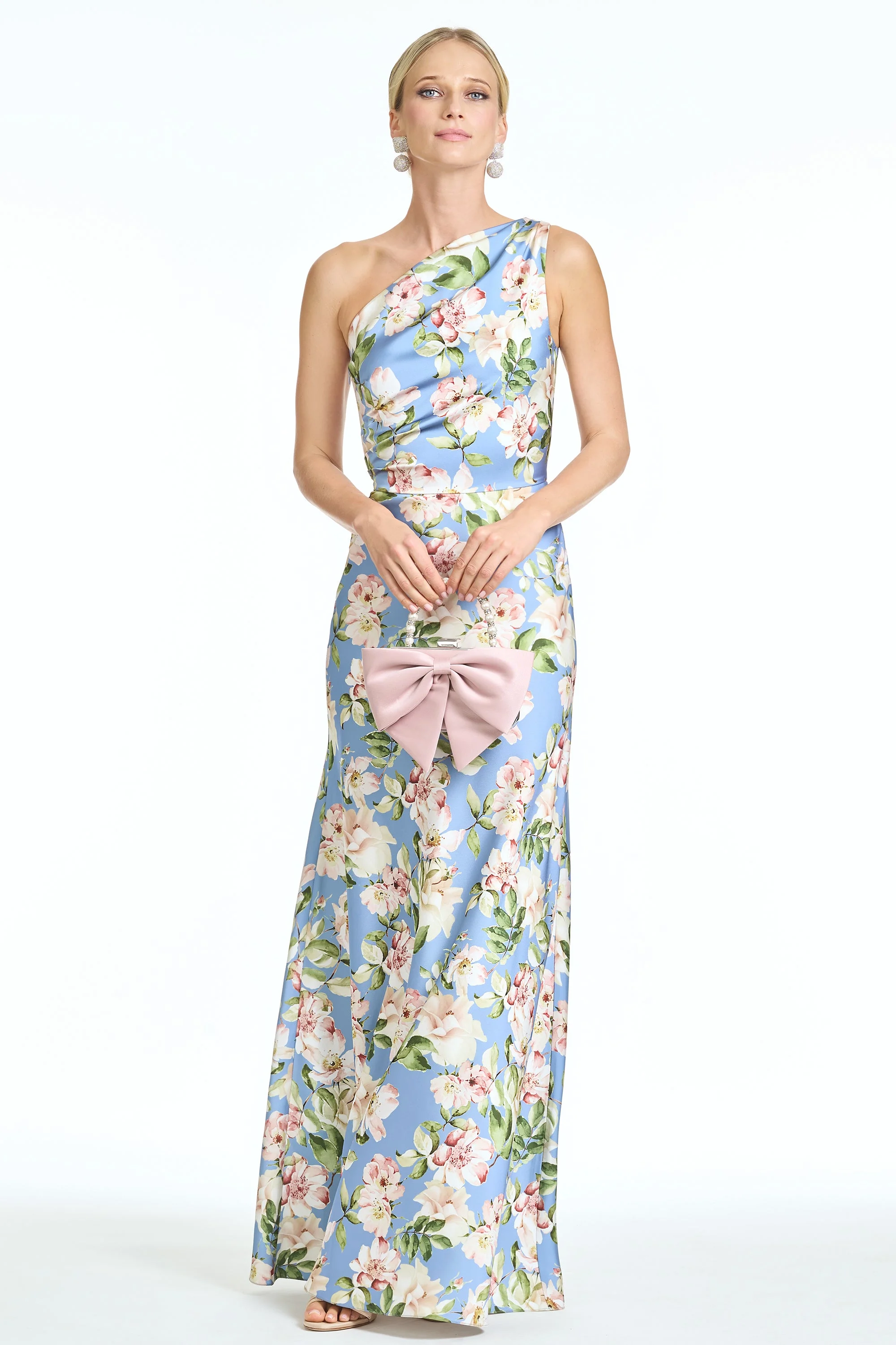 Delphine is our take on the one-shoulder, wear-on-repeat gown. The printed satin crepe cutie, featured in our Twilight Camellias print, flatters in all the right places. Timeless yet modern, this gown will be on your black-tie rotation. As always, our prints are exclusive to Sachin&Babi and created by our design team, ensuring you will not see them anywhere other than in our Collection. Details: - This is intended to be a full-length gown - Model is 5'10 wearing size 2 - Full-Length, 60" from top of shoulder to bottom hem - Side zipper - Half-lined - No Pockets - Printed Satin Crepe - 100% Polyester - Imported - Style # S262G32-494