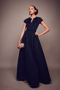 There's more than meets the eye with Estelle. All over Jacquard Cloque comes together with cap sleeves, a slight V, and embellishment at the bodice to create a classic, forever piece. A thin belt meets in the middle and the skirt cascades into an effortless A-line. Pure elegance embodied. Details: - Model is 5'10" Wearing A Size 2 - Full-Length, 61" from top of shoulder to bottom hem - Plus size 63" - Back Zipper - Pockets - Jacquard Cloque - 94% Polyester - 6% Nylon - Imported - Style #R251G13-410