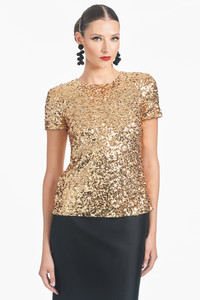 Garen is the perennial party top that every closet needs. Featuring a slim silhouette of scatter sequins that hug beautifully on the body, she's as versatile as she is fun. Pair this back to the Leighton skirt for a formal festive look, or throw on some blue jeans to add some sparkle to an otherwise casual ensemble. Details: - Model is 5'10" wearing size S - Full-Length, 23 1/2" from top of shoulder to bottom hem - 19 1/2" Front Length - Back Zipper - Scatter Sequin - 95% Polyester, 5% Spandex - Imported - Style #F243T06-710