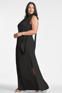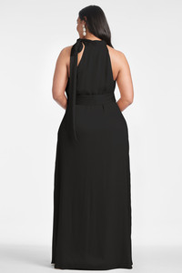 Kayla, simple yet romantic, is an elegant maxi dress with a self-tie at the neckline. The stitched-on pleated waistband hits at the true waist for the most flattering shape. We design all of our dresses in the Essential Social collection with the intention that they can be enjoyed again and again. A timeless dress should be worn often and well. Details: - This Is Intended To Be A Full-Length Gown - Model is 5'11" wearing size 2 - Plus-Sized Model is 5'10" wearing size 16W - Full-Length, 60" from top of shoulder to bottom hem - Side Zipper - Full Lining - Tie At Neck - No Pockets - Crinkle Georgette - 100% Polyester - Imported - Style #S221B02-001