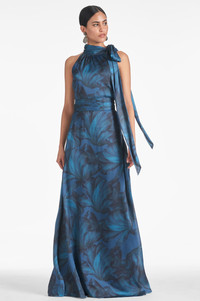 Kayla, simple yet romantic, is an elegant maxi dress with a self-tie at the neckline. The stitched-on pleated waistband hits at the true waist for the most flattering shape. We design all of our dresses in the Essential Social collection with the intention that they can be enjoyed again and again. A timeless dress should be worn often and well. As always, our prints are exclusive to Sachin&Babi and created by our design team, ensuring you will not see them anywhere other than in our Collection. Details: - This Is Intended To Be A Full-Length Gown - Model is 5'10" Wearing A Size 2 - Plus-Sized Model is 5'10" wearing size 16W - Full-Length, 60" from top of shoulder to bottom hem - Side Zipper - Full Lining - Tie At Neck - No Pockets - Crinkle Georgette - 100% Polyester - Imported - Style #F233D48-408