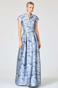 Make no mistake, the Marta Gown is no wallflower. She is the epitome of timeless, elevated personal style and quiet luxury. The fit and print are everything. The floor-length silhouette is partially inspired by the impeccable tailoring of a "shirt style" fit. This incredibly flattering body finds its way into our Iced Cherry Blossom print. A banded collar is tastefully cut away to meet concealed front buttons. Our Mikado fabric with the mono-color florals makes this dress a classic and a statement all at once. As always, our prints are exclusive to Sachin&Babi and created by our design team, ensuring you will not see them anywhere other than in our Collection. - This Is Intended To Be A Full-Length Gown - Model is 5'10" wearing a size 2 - Length of Garment, 60" from top of shoulder to bottom hem - Pockets - Separate Belt - Full Lining - Printed Mikado - 100% Polyester - Imported - Style # R261G33-450