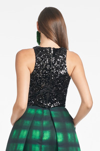 Lexie is an ordinary racer-back tank silhouette made extraordinary with its allover black sequins. We love the simplicity of this style; it is the perfect canvas while still adding its own edge to your look. In its clean lines and mono-embellishment lies an undeniable sophistication. Details: - Model is 5'10" wearing a size S - Full-Length, 17" from top of shoulder to bottom hem - Scatter Sequins - 95% Polyester - 5% Spandex - Imported - Style #F241T01-001