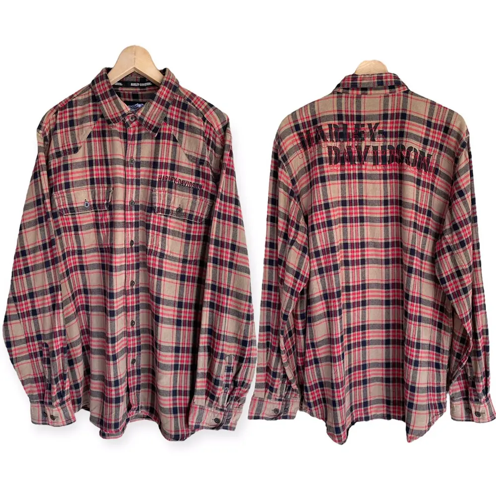 Vintage Harley Davidson SpellOut Plaid Tartan Flannel Shirt