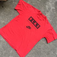 Brand : Nike Good condition Pre-owned 8.5/10 Size : L Pit to pit : 22 inches Length : 28 inches Colour : Red Style : Vintage tee Tag gone Colour fade a little bit and have 1 small hole on shoulders Pre-owned and used vintage products Not return and refund, So please read a detail before completing purchase Payment : accept paypal only Shipping worldwide by registered airmail (small package) Thai post registered. receiving the item within 7-30 business days non sat-sunday working after payment cleared (some case in Australia/italy/spain/north and south america 2-4 weeks) I ship every day, Monday through Friday! Many times your item will go out same day!! Get your stuff super fast when you buy from me Check item status out of my country in http://track.thailandpost.co.th