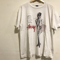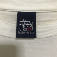 Brand : Stussy Good condition Pre-owned 8.5/10 Size : Tag say S but fit like L Pit to pit : 22.5 inches Length : 27 inches Colour : White Style : Vintag tee Single stitch Pre-owned and used vintage products Not return and refund, So please read a detail before completing purchase Payment : accept paypal only Shipping worldwide by registered airmail (small package) Thai post registered. receiving the item within 7-30 business days or more, non sat-sunday working after payment cleared (some case in Australia/italy/spain/north and south america 2-4 weeks) I ship every day, Monday through Friday! Many times your item will go out same day!! Get your stuff super fast when you buy from me Check item status out of my country in http://track.thailandpost.co.th