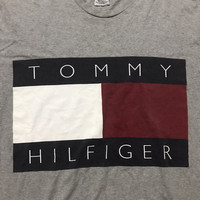 Brand : Tommy Hilfiger Good condition Pre-owned 8.5/10 Size : XL Pit to pit : 24.5 inches Shoulder : 25 inches Length : 31 inches Colour : Grey Style : Vintage tee Have stain a little bit Pre-owned and used vintage products Not return and refund, So please read a detail before completing purchase Payment : accept paypal only Shipping worldwide by registered airmail (small package) Thai post registered. receiving the item within 7-30 business days or more, non sat-sunday working after payment cleared (some case in Australia/italy/spain/north and south america 2-4 weeks) I ship every day, Monday through Friday! Many times your item will go out same day!! Get your stuff super fast when you buy from me Check item status out of my country in http://track.thailandpost.co.th