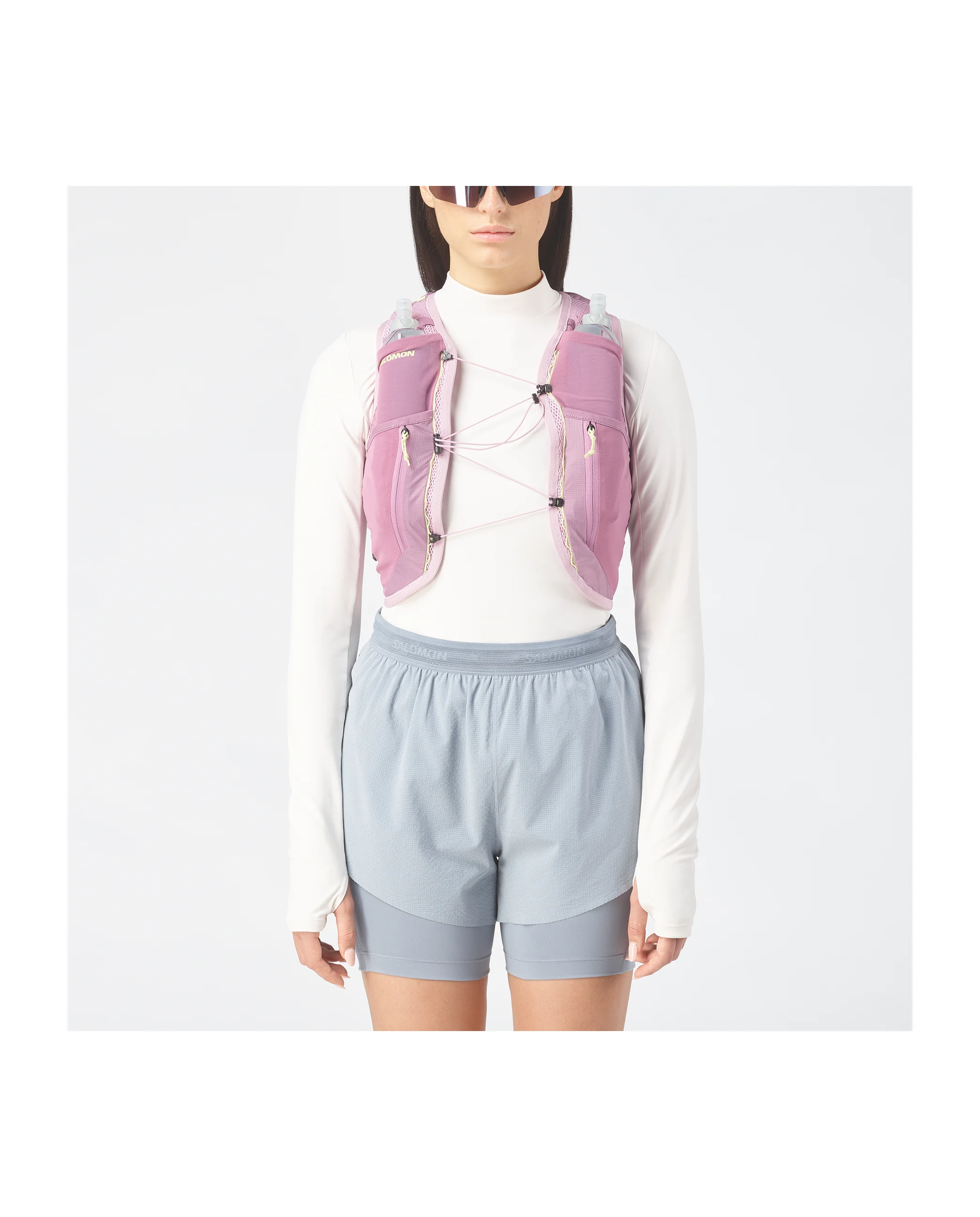 To provide a stepping stone to take your trail running to the next level for ultra-distances, we launched the women's ACTIVE SKIN 12 – the biggest volume yet in this range. The fabrics are soft and breathable, the fit is designed for women, and chest pockets provide effortless access to your flasks. - Best for:Single day - Bag Width:7.48 IN - Bag Depth:0.39 IN - Volume:12 L - Weight per unit:9 OZ - Weight Including Accessories:11.1 OZ - Activities:Trail running - Hydration Solution Included - Product Type Description (Apparel & Gear):Women's Running Vest with flasks included Features & Fabrics Back Systems - 3D comfort Bags Construction - sensiFIT™ women specific : Adapted to women’s morphology, the design uses stretch, breathable fabrics and lightweight adjustments, including double-stretch chest straps, to optimize fit and stability. Benefits Bags - Simplicity Care Article ref.LC2861300