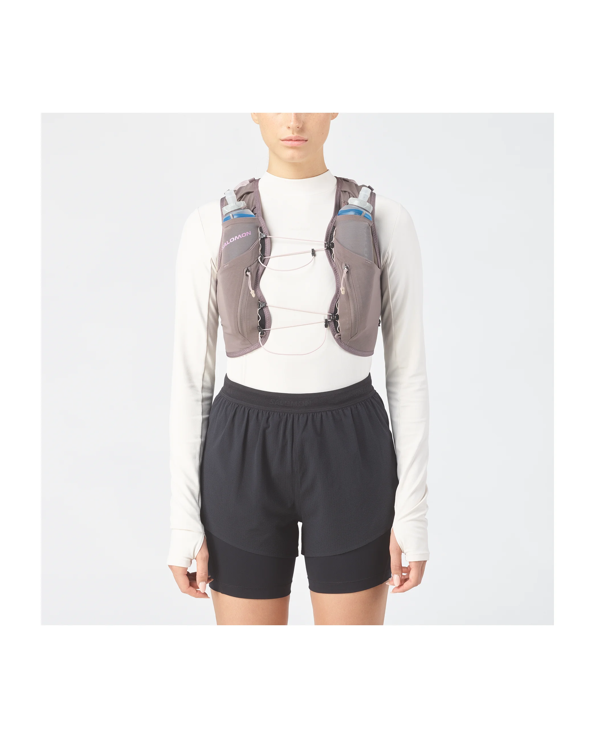 Combining enhanced stability, fit & versatility, the Adv Skin 12 Subli gives our best-selling hydration vest a new look with sublimated graphics. Fine-tuned for demanding endurance races and runners, it provides easy access to hydration, long-distance comfort and freedom of movement. With 12-liter capacity ideal for longer trails (60km+). - Best for:Few days - Bag Width:0.39 IN - Bag Depth:11.42 IN - Volume:12 L - Weight per unit:9 OZ - Weight Including Accessories:11.4 OZ - Activities:Trail running - Hydration Solution Included - Product Type Description (Apparel & Gear):Unisex Running Vest with flasks included Features & Fabrics Bags Construction - sensiFIT™ : The construction uses stretch, breathable fabrics and lightweight adjustments to optimize fit and stability. - Y SHAPE construction : The back of the pack is built in the shape of a Y with strategically placed stretch and supportive fabrics to stabilize the weight in the main compartment. Sustainability - PFC-Free : To help reduce our impact on the environment, no PFC (Perfluorocarbons) are used to ensure the water repellency of our products. Benefits Bags - Versatility Care Article ref.LC2856300