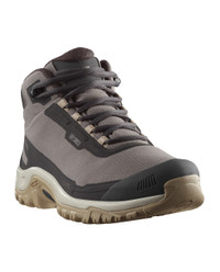 Your ‘go to’ winter shoe. The SHELTER WATERPROOF is just what you should be wearing when you’re out and about in wintery conditions. Lightweight, warm and waterproof, and featuring our trademark contaGRIP sole as well as adjustable fitting, you’ll be comfortable on your feet all day long. - Height : Ankle - Foot Support : Neutral - Waterproofness : adv.DRY - Weight : 360 g Features & Fabrics - Winter Contagrip® : For all winter conditions, the Winter Contagrip® uses a unique compound that maintains adhesion in freezing temperatures. Lug patterns depend on usage. - Softshell : Supple, breathable and durable material that protects from rain, snow and outdoor conditions with light thermal insulation - Faux fur lining : A warm, cozy, insulated lining for winter use. - Winter sockliner : Designed for cold temperatures, this sockliner features a 4mm layer of EVA foam for increased insulation, as well as a soft cover for extra comfort. - Regular laces : Traditional lacing system with eyelets. - adv.DRY : Salomon's own 3-layer waterproof laminate. Made with a PFC-free membrane sandwiched between 100% recycled fabric and nylon backing. - adv.WARM : Advanced cold-weather insulation that provides an excellent weight-to-warmth ratio with small air pockets between the fiber balls. Made from 70% recycled polyester. - activ.WARM : Our comfort insulation technology made with 90% recycled polyester - a lightweight insulation layer covers the mid-foot and toe area to create warmth in the most essential areas. Lacing system : Regular laces Waterproofness : adv.DRY Lining : Textile Inlay sole : Textile Outsole : Rubber Upper : Textile / Synthetic Article ref. L47855200