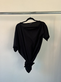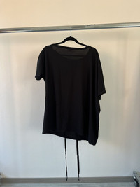Ann Demeulemeester black asymmetric bondage strap tee from the 2010s. A rare and versatile piece that captures the label’s signature dark romanticism and experimental tailoring. Made in Portugal from soft, lightweight cotton with a relaxed drape, this top features long internal straps that can be tied, wrapped, or knotted to create a variety of silhouettes. The asymmetry and freedom in styling allow it to shift from minimal to sculptural depending on how it’s worn. Raw edge finishes, dropped shoulders, and a wide neckline give it that effortless, undone look Ann is known for. Can be styled with one shoulder exposed, knotted high for a cropped effect, draped low with flowing ties & more Size 40 FR, fits M/L. Straps can help adjusting the fit. Perfect vintage condition