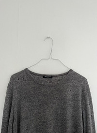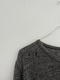 Balmain by Christophe Decarnin Spring Summer 2010 distressed linen longsleeve T-shirt. Rare archive piece from the height of Decarnin’s era at Balmain, known for its rock inspired silhouettes and destroyed luxury aesthetic. This tee features intentional distressing and holes throughout in soft breathable linen fabric. As seen similar in the official SS10 campaign and similar worn by Kanye West during the same era. Made in Portugal with signature elongated cut and raw details. A true grail for collectors and fans of Decarnin era Balmain. Size S, see measurements 9/10 condition, no visible flaws Made in Portugal