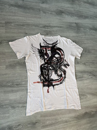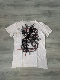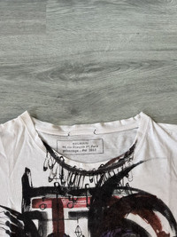 Rare piece from the iconic Spring Summer 2011 collection designed by Christophe Decarnin. Made in France, this tee features a striking abstract graffiti-style graphic printed on a thin, breathable cotton fabric. Classic distressed aesthetic from this era of Balmain with natural distressing throughout on the collar, armpits, hem and seams. Great condition, distressing speaks for itself. There are no stains or smells. Tagged size 40IT, fits like L/XL. Please refer to measurements.