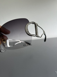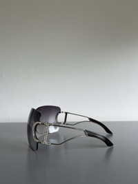 Ultra-rare and iconic Dior Diorly 1 shield sunglasses, designed by John Galliano during his legendary tenure at Dior. These are a true Y2K luxury statement — featuring a frameless wraparound shield lens in a sleek gradient smoke tint, and the signature rhinestone-encrusted "D" and "O" Dior logos at the temples. The rhinestones add a bold glam touch, especially the standout "O" which is fully iced out, making these a certified Galliano-era grail Size: One Size In perfect condition, like new. No flaws Made in Italy