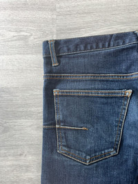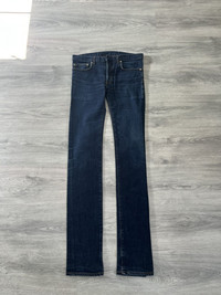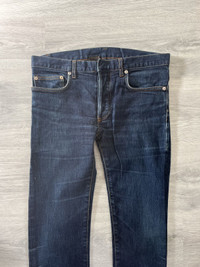 Dior Homme by Hedi Slimane Autumn Winter 2006 “These Grey Days” denim. Made in Italy. Classic five pocket construction in blue indigo wash with natural fading. Slim straight cut with button fly closure. Size 30, unaltered Perfect vintage condition