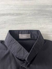 Inverted collar shirt from Autumn/Winter 2006 “These Grey Days”. Designed by Hedi Slimane during his iconic tenure at Dior Homme. This black button up shirt features the signature inverted collar detail, a standout motif from the AW06 runway collection. Crafted in Italy from high quality cotton, the shirt maintains Slimane’s signature sharp tailoring and minimalist design ethos. Cuff buttons feature subtle engraved detailing, and the overall silhouette is clean and structured with a slightly cropped body, typical of Slimane’s vision of rock-infused elegance. Size 36 - XS/S In great condition with no major flaws like holes, stains or tears.