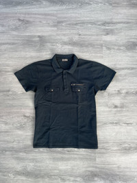 Stylish and clean Dior Homme polo shirt featuring dual chest cargo pockets—one with a flap and one with a functional zipper. A subtle yet distinctive piece that blends utility with high-end fashion. Made in Turkey with premium quality cotton and a tailored, slim Dior Homme fit that flatters the frame. This is a great piece for smart-casual styling, easy to dress up or down. The structured collar and modern detailing set it apart from your standard polo shirt. Size XL, see measurements In good condition, small pinhole above the zipper (see photo) not very noticeable at all. Rare
