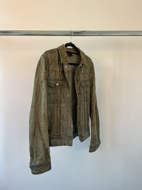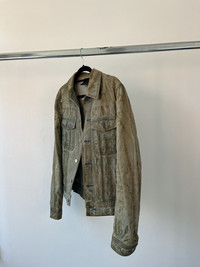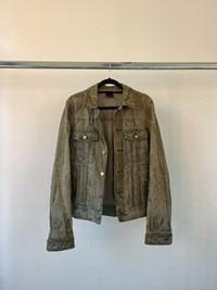 Grail piece from one of Slimane’s most celebrated collections, this jacket is crafted from bleu clair denim with a glossy waxed finish that gives it a striking shine and structure. It features signature tailored darts on the two front pockets and back shoulders, enhancing the sharp silhouette and giving it a subtly architectural shape. The fit is slim and cropped with refined distressing along the hems and seams, capturing Hedi’s rock-infused minimalism. Made in Italy from 100% cotton, this jacket is a standout archival piece and a perfect example of Slimane’s early 2000s Dior Homme vision. Size 52, fits L In great condition with no major flaws.