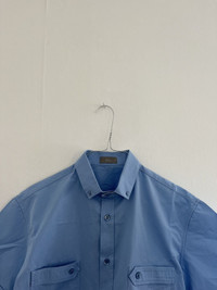 Dior Homme Spring Summer 2006 “The World Was a Mess but His Hair Was Perfect” short sleeve military safari shirt in light blue designed by Hedi Slimane. A clean and refined piece from one of Slimane’s most poetic and influential collections this shirt is made in Italy from crisp high quality cotton and features a structured slim silhouette with two flap chest pockets and a strong pointed collar. The design strips away unnecessary details focusing on minimalism and precise tailoring without epaulets or mid body stripes resulting in a sleek utilitarian look softened by the pastel tone. A rare archival garment that perfectly captures the tension between discipline and fragility central to Slimane’s Dior Homme vision. Size 40 - M 9/10 condition, no flaws. Like new Made in Italy