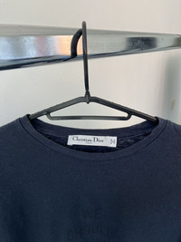 Christian Dior “We Should All Be Feminists” t shirt in navy with subtle black text across the chest. Iconic design first introduced by Maria Grazia Chiuri as part of her debut collection. Features Dior’s signature bee printed on the back of the neck. Soft lightweight cotton, made in Italy, A rare and timeless Dior piece that combines statement design with everyday wearability. Size M Perfect condition