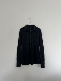 Gucci by Tom Ford Spring/Summer 2001 long-sleeve one pocket button up shirt. Made in Italy from a soft, breathable cotton that feels much lighter and more comfortable than the classic stiffer shirt material. Features a minimalist design with a single chest pocket and special reflective, monogrammed buttons for a unique, elevated detail. A rare piece that captures the sleek, timeless vibe of the Tom Ford era at Gucci. Perfect for layering or wearing on its own. In excellent condition. Size 41 - M, slim large 9/10 condition, no visible flaws. Made in Italy