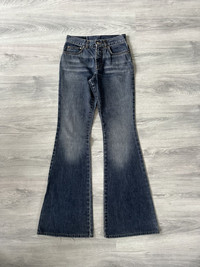 A rare and iconic piece from the Tom Ford era at Gucci, these Spring/Summer 2003 blue wash flared denim jeans epitomize early-2000s luxury streetwear. Crafted in Italy, they feature a flattering high-rise fit and dramatic flare, capturing the bold silhouette that defined Ford’s tenure at Gucci. The jeans are constructed from premium cotton denim with a subtle blue wash, offering a timeless and versatile addition to any wardrobe. Size 38 IT - 26 US Excellent condition with no major signs of wear