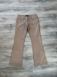 Gucci by Tom Ford Spring/Summer 2004 flared trousers, made in Italy during the final stretch of Ford’s revolutionary era at the house. Cut from a structured cotton blend fabric in a warm beige tone, these trousers feature a slight sheen that catches light subtly, enhancing their luxurious, refined finish. Designed with a low rise waist and sharply tailored flare through the leg, they capture the sensual, streamlined aesthetic that defined Ford’s early 2000s Gucci collections. The front showcases clean lines with two welt style slash pockets and minimal seam detailing, while the back is kept sleek for a sculpted silhouette. The trousers hug through the hips and thighs before flaring outward with runway level drama. Finished with a tonal button and zipper fly, and a woven Gucci label on the interior waistband. Size 42 IT In excellent vintage condition with no major signs of use.