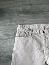 Rare vintage Helmut Lang white denim jeans from 1998, a standout piece from the designer’s influential late '90s collections. Helmut Lang was known for redefining minimalism and elevating everyday staples with architectural cuts and refined construction, and these jeans are a perfect example. Size 36 In good condition with no major flaws. Made in Italy