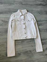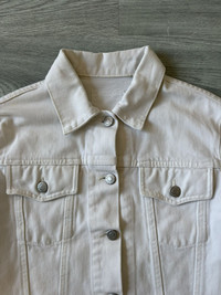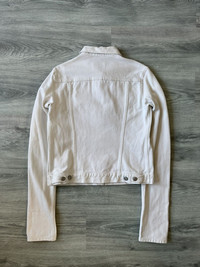 Helmut Lang Autumn/Winter 1999 Extended Oversleeve White Denim Jacket Made in Italy. Features a boxy, cropped fit with extended oversleeves for a unique look that can also be folded to a regular length. Crafted from high quality white denim, it’s finished with branded silver tone hardware. Size 40 IT - fits mens XS Perfect vintage condition, no visible flaws