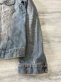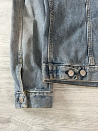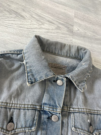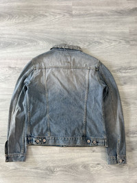 Helmut Lang Spring Summer 2002 Vintage Clean Broken Denim Jacket in a light blue wash with subtle fading and minimal distressing throughout. Constructed from mid weight Italian denim with a soft, broken in texture and signature Helmut Lang minimalist detailing. Features include vertical welt pockets, side adjusters, subtle contrast stitching, and classic button front closure with embossed metal hardware. Light natural fading throughout. Slightly cropped & boxy fit Size 44, fits mens S Perfect vintage condition, minor signs of wear. Overall perfect