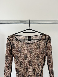 Rare JPG mesh longsleeve top from the 1990s featuring an all-over tribal & paisley inspired pattern on a sheer mesh base, signature mohair trim details along the seams, adding subtle texture and dimension. Made in Italy. Size S, can stretch up to as twice as big Perfect vintage condition, well kept & preserved