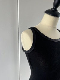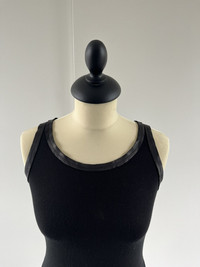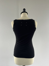 Rare Maison Margiela Spring/Summer 2011 Leather Collar Ringer Viscose Draped Tank Top. A stunning piece from one of Margiela’s most iconic collections, featuring a unique leather collar that contrasts beautifully with the soft viscose fabric. The tank has a flattering drape in the back, Made in Italy with impeccable craftsmanship. Size 40 IT / FR 36. Fits S/M. Stretchy fabric Perfect vintage condition, no visible/noticeable flaws