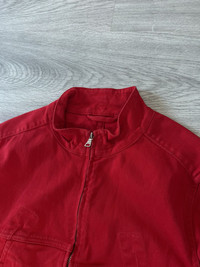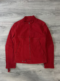 Prada 1990’s Red Denim Moto Biker Cafe Racer Jacket Vintage