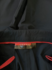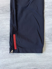 Rare archival Prada trousers from the early 2000s featuring the iconic red rubber tab logo at the hem. Crafted from technical nylon, these pants combine minimalist design with utilitarian details. Functional zippers at the ankle with mesh lining for ventilation and zippered front pockets for secure storage. A staple from the golden era of Prada Sport Size 48 - 32 US 9/10 condition, see pictures Made in Italy