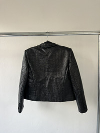 For sale is an Autumn Winter 2013 Saint Laurent Paris single breasted jacket designed by Hedi Slimane. Crafted in France from a black coated cotton-blend tweed, this piece is a standout from Slimane’s early era at the house, blending sharp tailoring with a raw edge. The structured silhouette features padded shoulders, a notched collar, two front welt pockets, and a single-button closure. The coated tweed finish gives it a subtle sheen and modern texture, setting it apart from classic tailoring staples. Fully lined and expertly constructed. Size: Womens 42. In perfect condition, has 2 buttons that close perfectly. No visible flaws or signs of use.