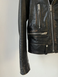 From the iconic Saint Laurent Spring Summer 2017 collection, this is the L01 biker jacket in beautifully distressed black lambskin leather. The distressing is intentional and gives the jacket a unique worn-in, almost rusty look with subtle brown undertones peeking through — truly stunning in person. Classic L01 details throughout: asymmetrical zip closure, epaulets, zipped cuffs, snap lapels, and multiple front pockets. This piece captures that authentic rock ‘n’ roll aesthetic Hedi Slimane made legendary at Saint Laurent. Made in Italy, exceptional quality as expected. Size 48, fits M Perfect condition with no visible flaws, kept carefully.