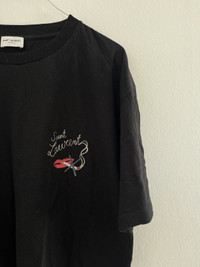 Saint Laurent No Smoking Lips Short Sleeve Logo T Shirt Size XS, fits like a Small/medium 8/10 condition, some damage on the hem ( see photo ). Blends in quite well, since Saint Laurent has a lot of pieces featuring intentional distressing. Made in France