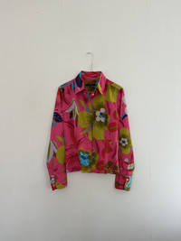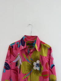 Ultra rare piece from Gucci's iconic Spring/Summer 1999 collection “Las Vegas Hippie”, designed by Tom Ford. This beautiful shirt features a bold, vibrant floral print on 100% silk in a rich pink base with multicolor botanical graphics. Made in Italy, the shirt is a standout example of Ford’s maximalist, sexy vision for Gucci during this era. The print was heavily featured on the runway and in campaign imagery, making this shirt a highly collectible item for fans of archival designer fashion. Size S 9/10 condition, no signs of use. Perfect. Made in Italy