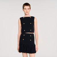 Sleeveless fine knit crop top with a boat neck and decorative double-breasted buttons. - Sandro Women's fine knit crop top - Boat neck - Sleeveless - Double-breasted buttons - Designed for a cropped fit Reference: SFPPU02639_20 COMPOSITION & CARE Composition - Main fabric: 53% viscose, 45% polyamide, 2% elastane Care advice - Hand wash - Do not bleach - Do not tumble dry - Iron at a maximum temperature of 110°C without steam - F - Professional dry clean, with hydrocarbon solvent, normal treatment