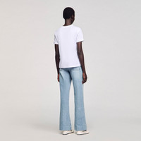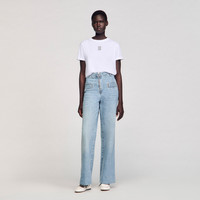 Round-neck, short-sleeved cotton T-shirt with embroidery. - Sandro Women's cotton T-shirt - Round neck - Short sleeves - Turn-ups at bottom of sleeves - 4S embroidery - True to size Reference: SFPTS01636_10 COMPOSITION & CARE Composition - Main fabric: 100% cotton Care advice - Gentle cycle 30° - Do not bleach - Do not tumble dry - Iron at a maximum temperature of 110°C without steam - Do not dry clean