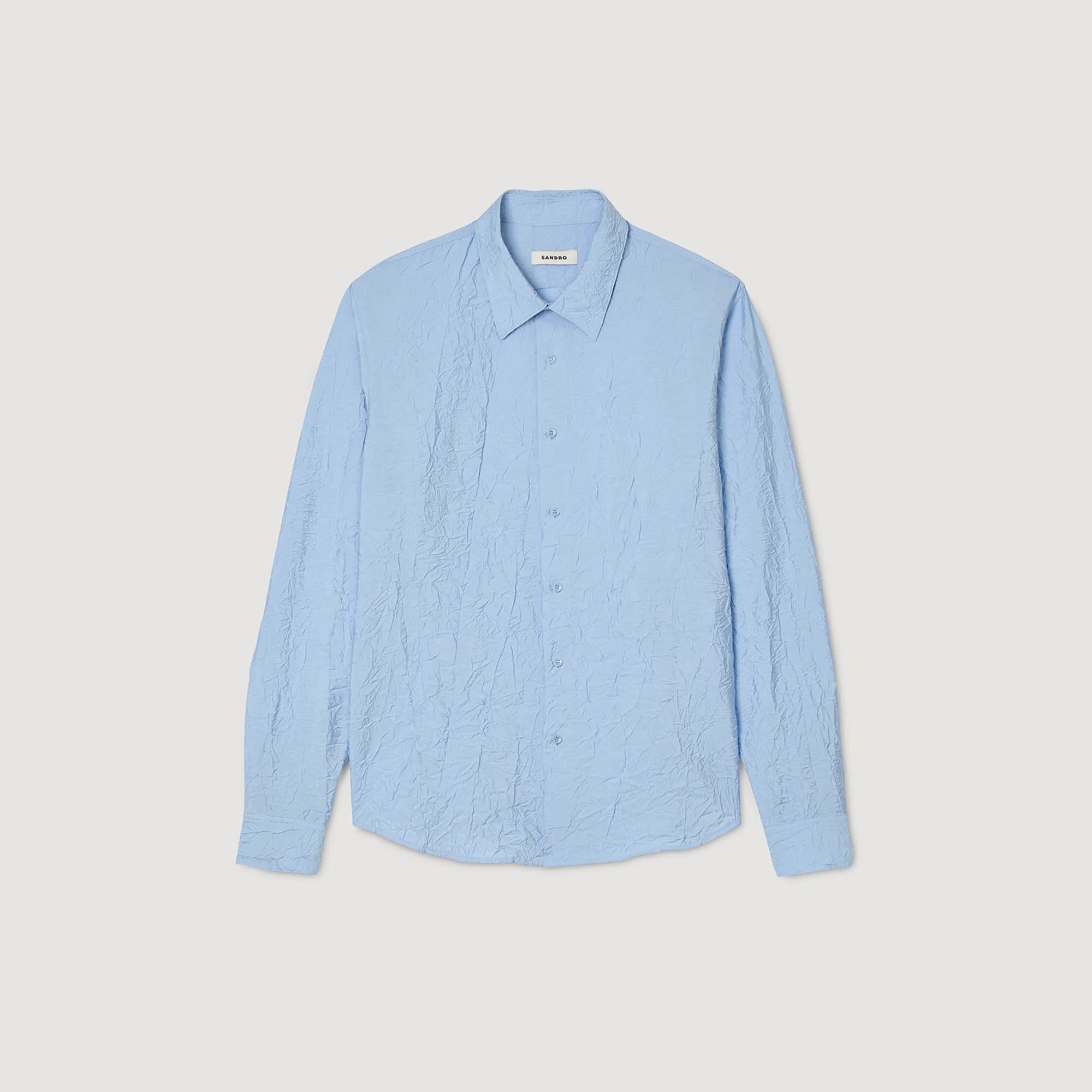 Crinkled effect long-sleeved shirt with classic collar and button fastening. - Sandro Men's crinkled effect shirt - Classic fit - Shirt collar - Long sleeves - True to size Reference: SHPCM01497_40 COMPOSITION & CARE Composition - Main material: 87% viscose, 13% polyamide Care advice - Do not wash - Do not bleach - Do not tumble dry - Do not iron - F/ - Professional dry clean, with hydrocarbon solvent, gentle treatment