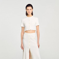 CROPPED POINTELLE KNIT CARDIGAN