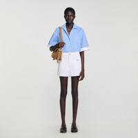 Flared denim shorts with a high waist and buttoned patch pockets at the front. - Sandro Women's denim shorts - High waist - Flared cut - Patch pockets - Decorative metal button at the front - Belt loops - Designed for a flared fit Reference: SFPSH00498_10 COMPOSITION & CARE Composition - Main material: 100% cotton Care advice - Gentle cycle 30° - Do not bleach - Do not tumble dry - Iron at a maximum temperature of 110°C without steam - Do not dry clean