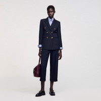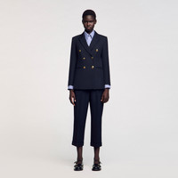Sandro women’s blazer • Double-breasted suit jacket • Tailored collar • Two piped pockets • Gold-tone buttons • This jacket matches the shorts The model is 5'10" tall and wears a size 36 FR / 4 US This item's main material is at least 50% recycled. Recycling reduces the environmental impact by limiting the use of virgin materials. The model is 177 cm / 5'9 tall and wears a size 36 FR / 8 UK COMPOSITION Main fabric: 55% polyester, 45% virgin wool Under collar: 100% polyester Body lining: 90% viscose, 10% acetate Pocket lining: 100% cotton Reference: SFPVE00440_44