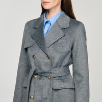 Reference: SFPOU00766_24 COMPOSITION & CARE Composition - Main material: 80% wool, 20% polyamide - Lining: 100% polyester Care advice - Do not wash - Do not bleach - Do not tumble dry - Iron at a maximum temperature of 110°C without steam - F/ - Professional dry clean, with hydrocarbon solvent, gentle treatment
